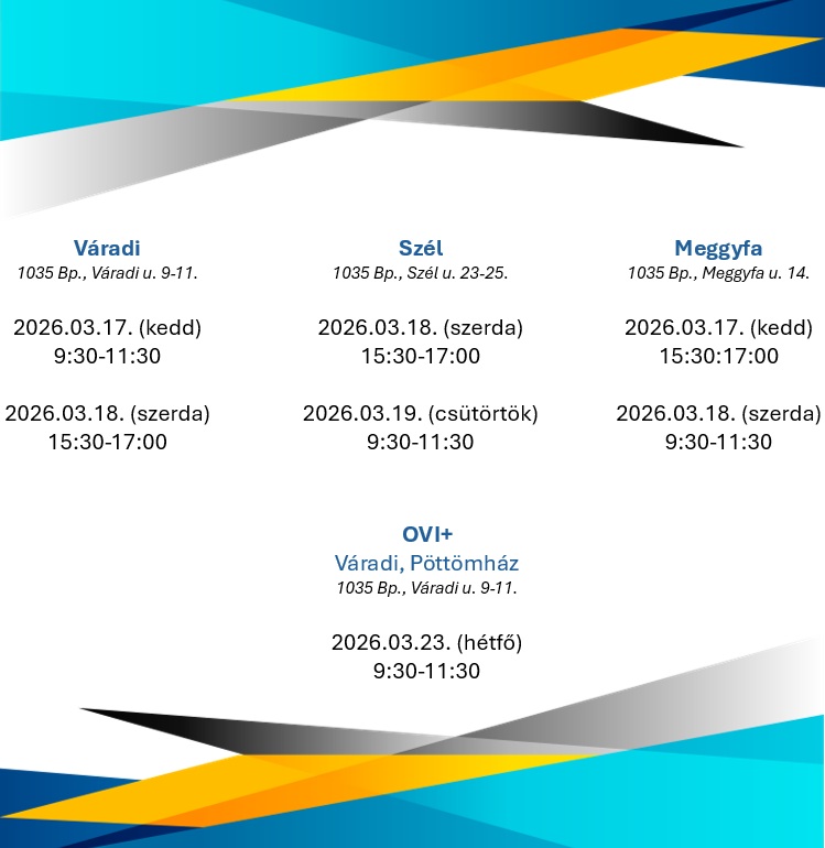Helyszín: Váradi utcai épületünk tornaterme (1035 Budapest, Váradi u. 9-11. )